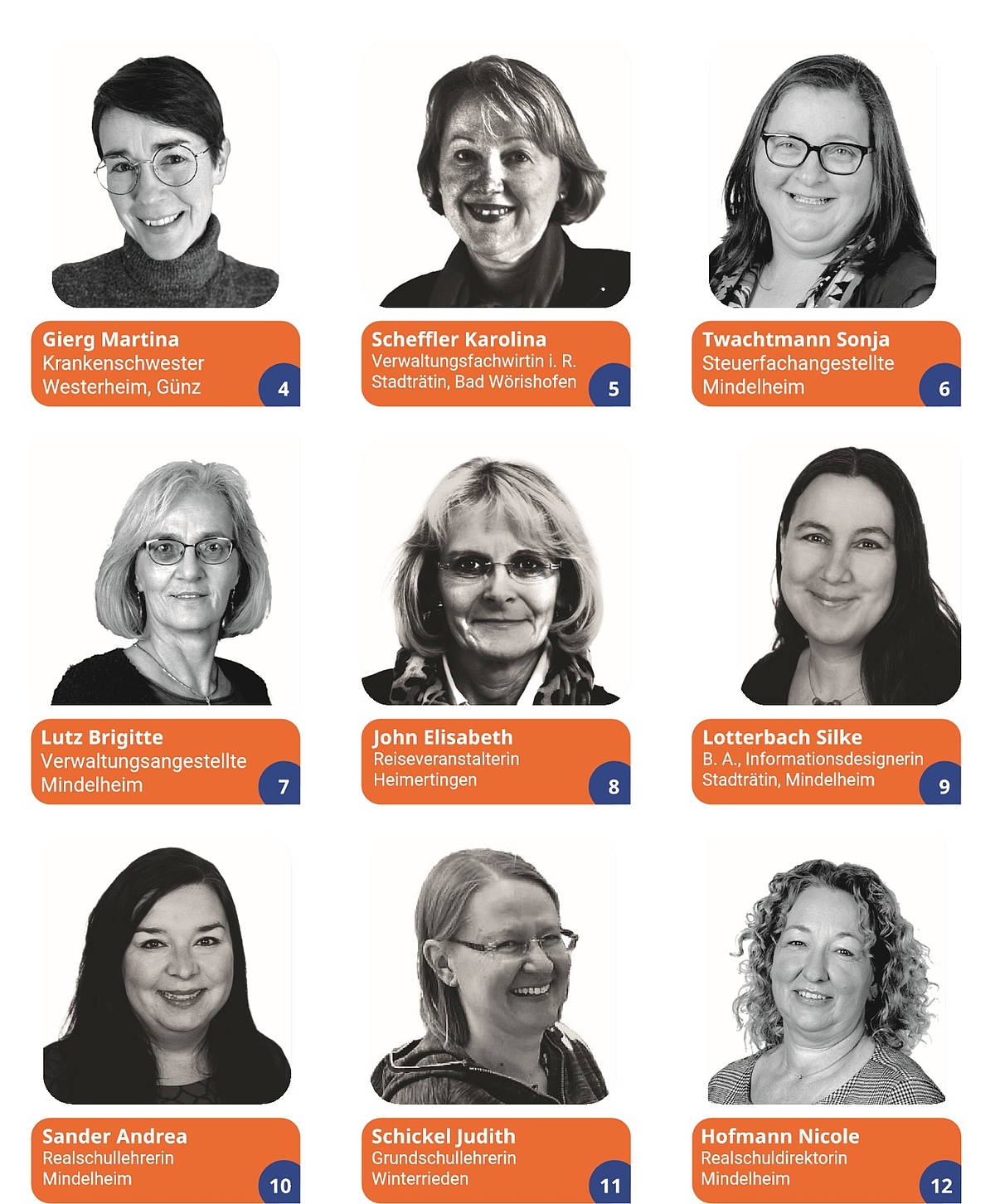 | 9 | Lotterbach | Silke | B. A., Info-Designerin | Stadträtin | Mindelheim |