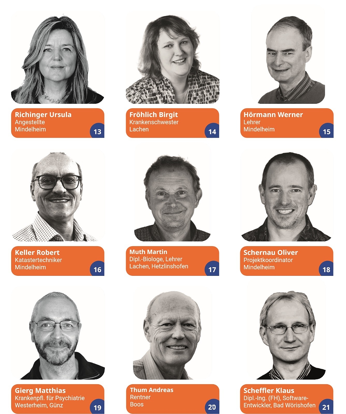 | 21 | Scheffler | Klaus | Dipl.-Ing. (FH), SW-Entwickler | Bad Wörishofen | |